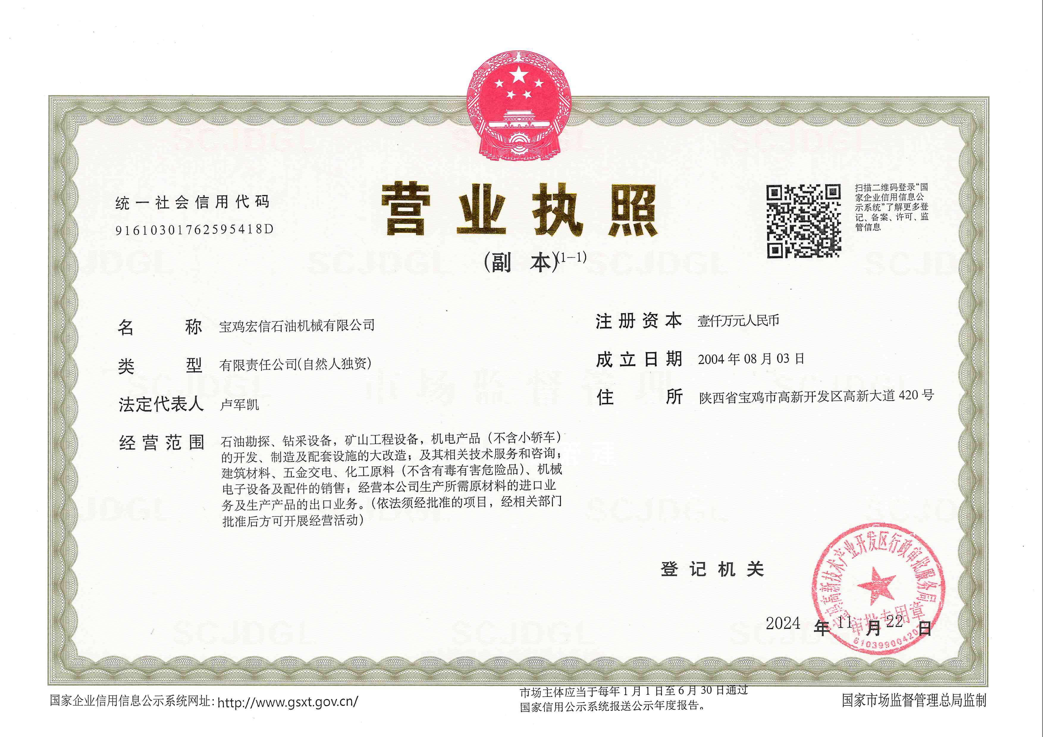 欢迎访问宝鸡宏信石油机械有限公司网站 今天是: